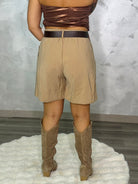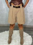 La modelo mide 1,65 cm y lleva una talla M. Talla única, talla XXS-L. Bermudas oversize con cinturón y cinturilla elástica en la espalda.